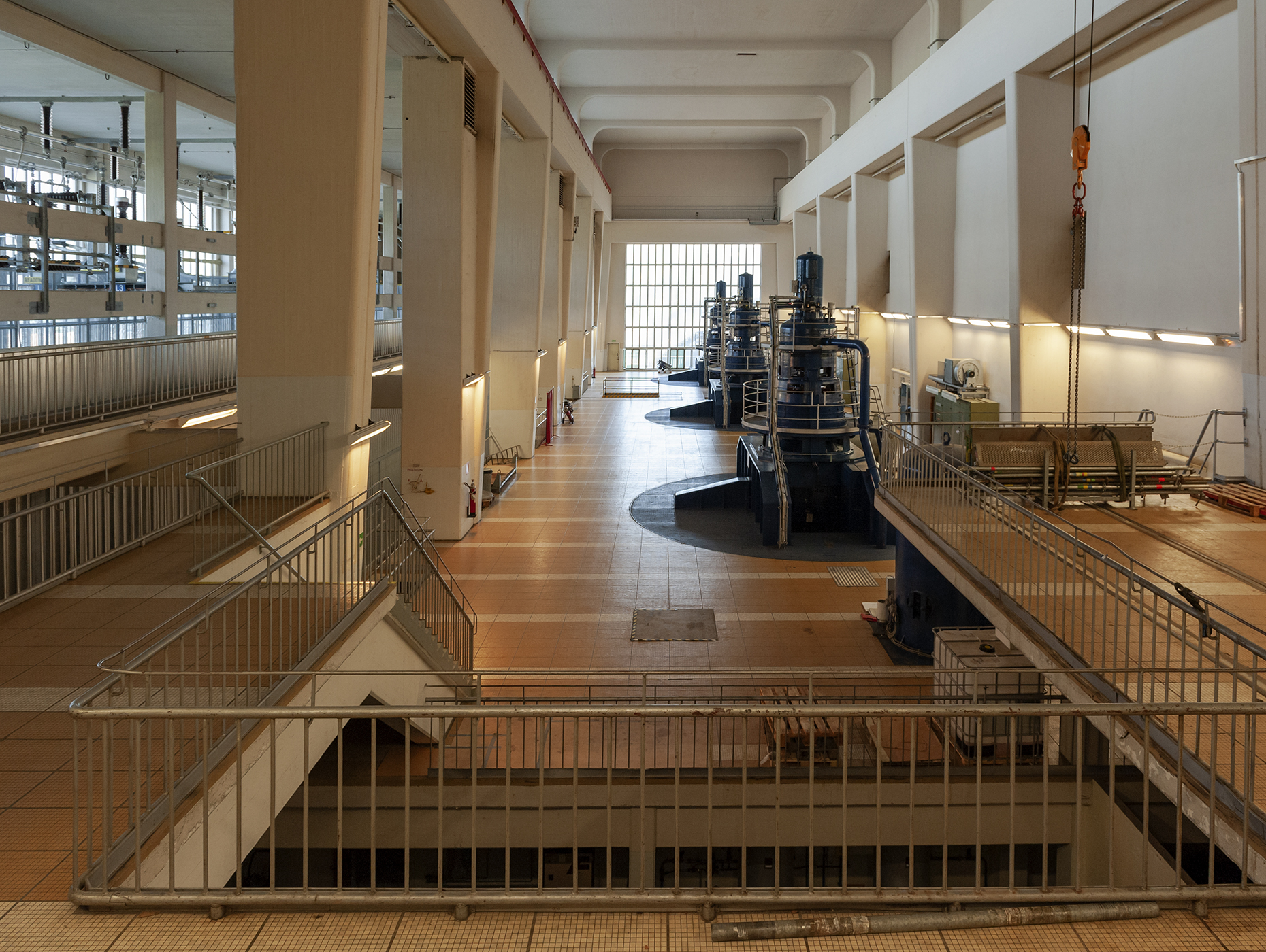 Voimalaitos: Paikalla valettu betonirunko, rapatut julkisivut, nauhamaiset ikkunat