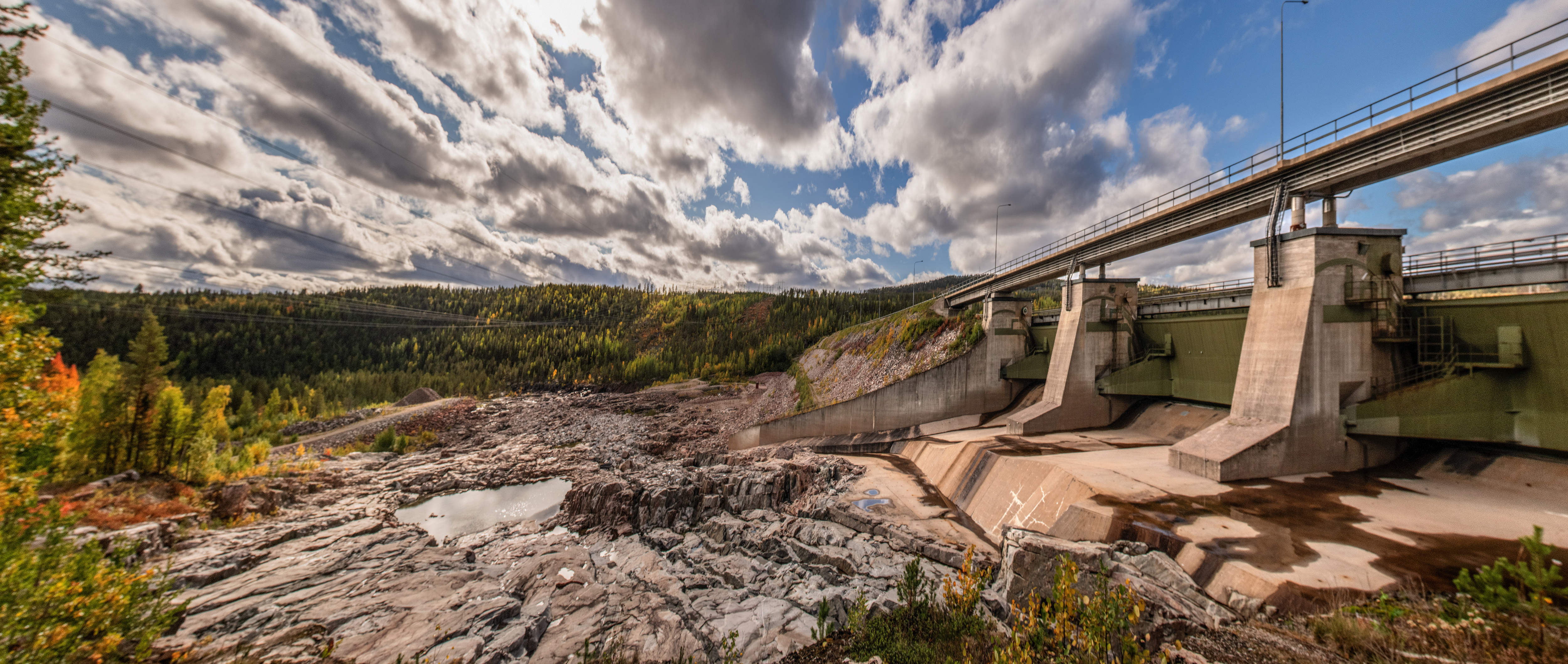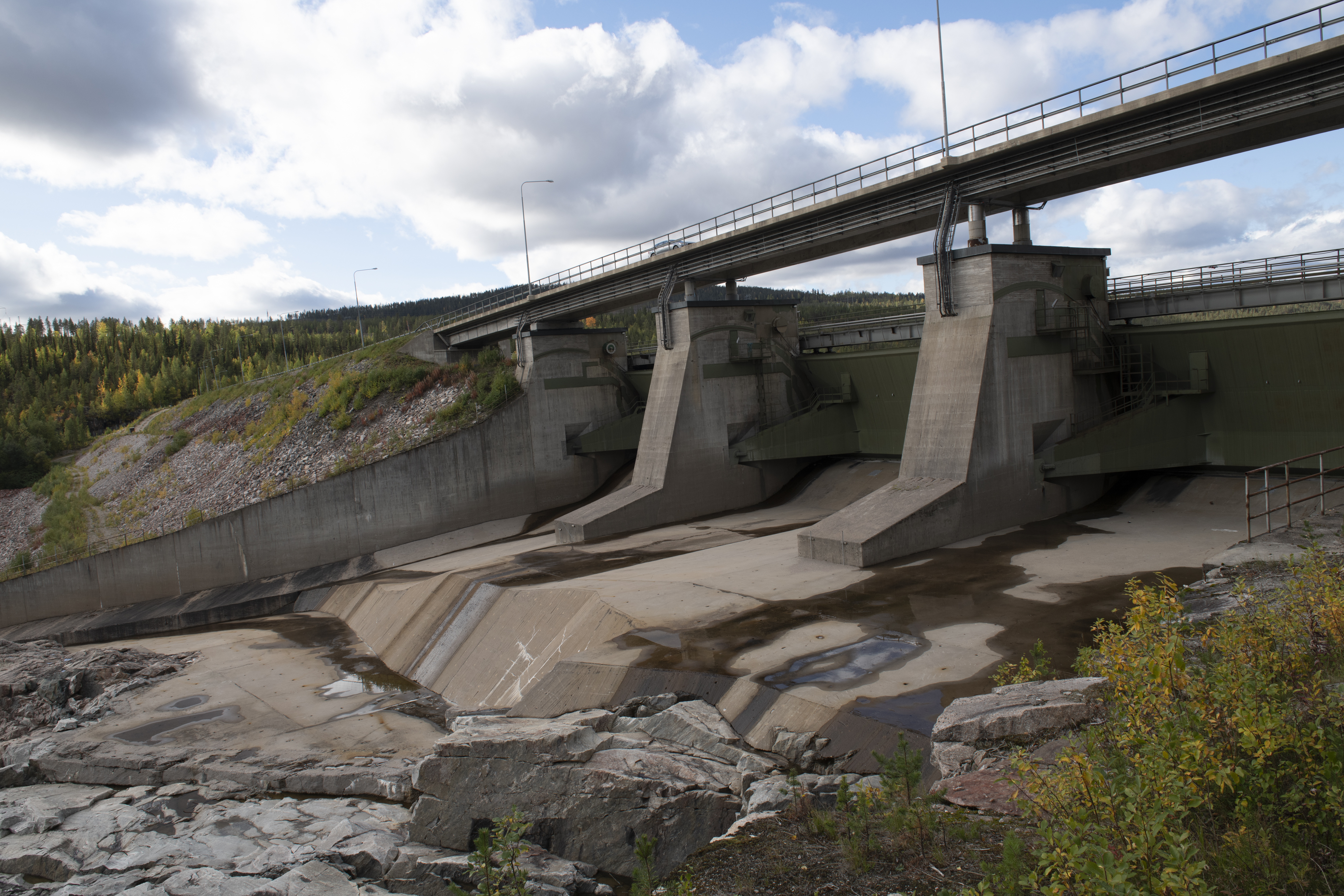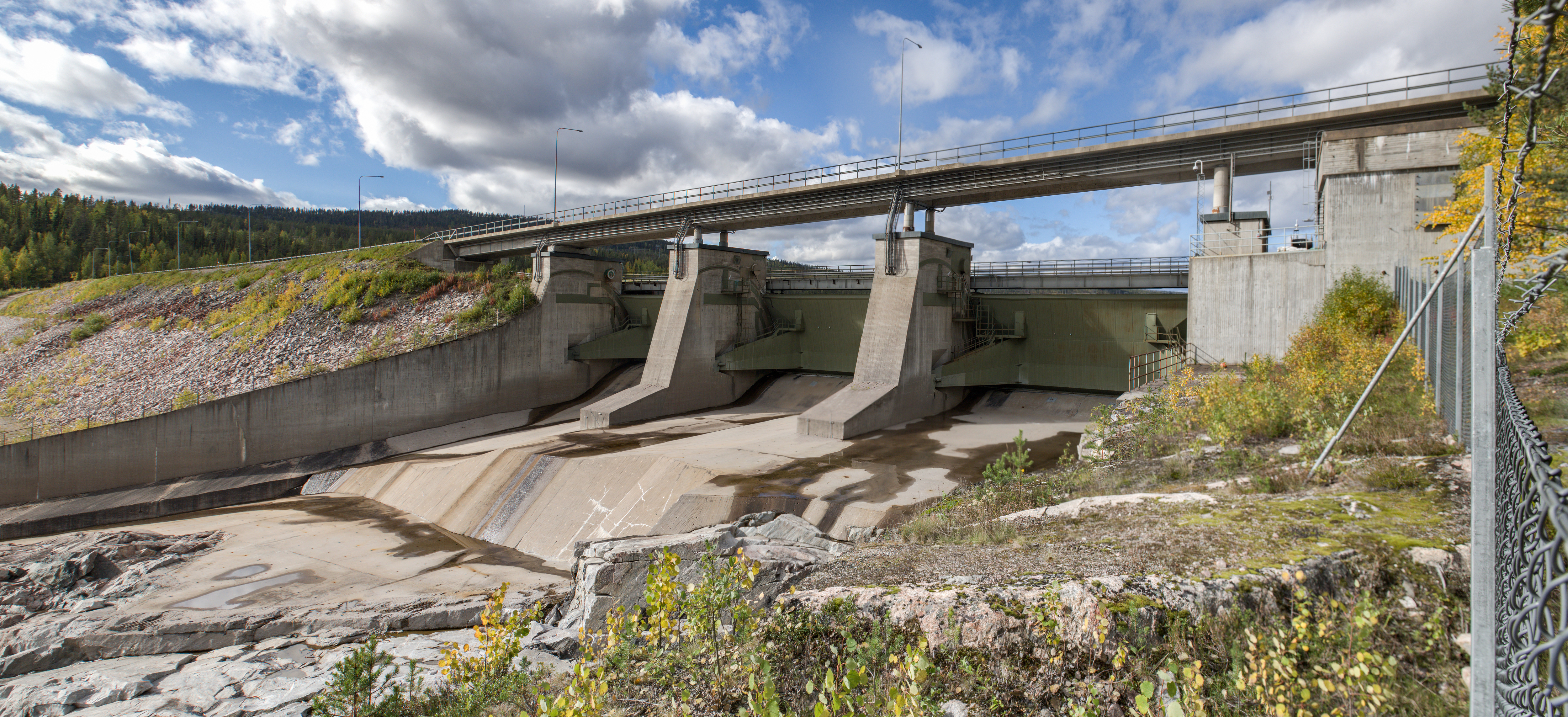Ligga started operating in 1954, but an expansion housing a third power generation unit and a new machine room was added in 1982. It’s Sweden’s first unstaffed and completely remotely controlled power plant. The power plant foundations are on rock, and there is a spillway section with three openings. All of the gates are upward segment gates; two are operated by an electric winch, and one by a jack. The powerhouse is subterranean, with both the machine room and the control room completely beneath the rock. Above the machine room, a 70-centimetre thick concrete dome has been moulded, completely disconnected from the rock.