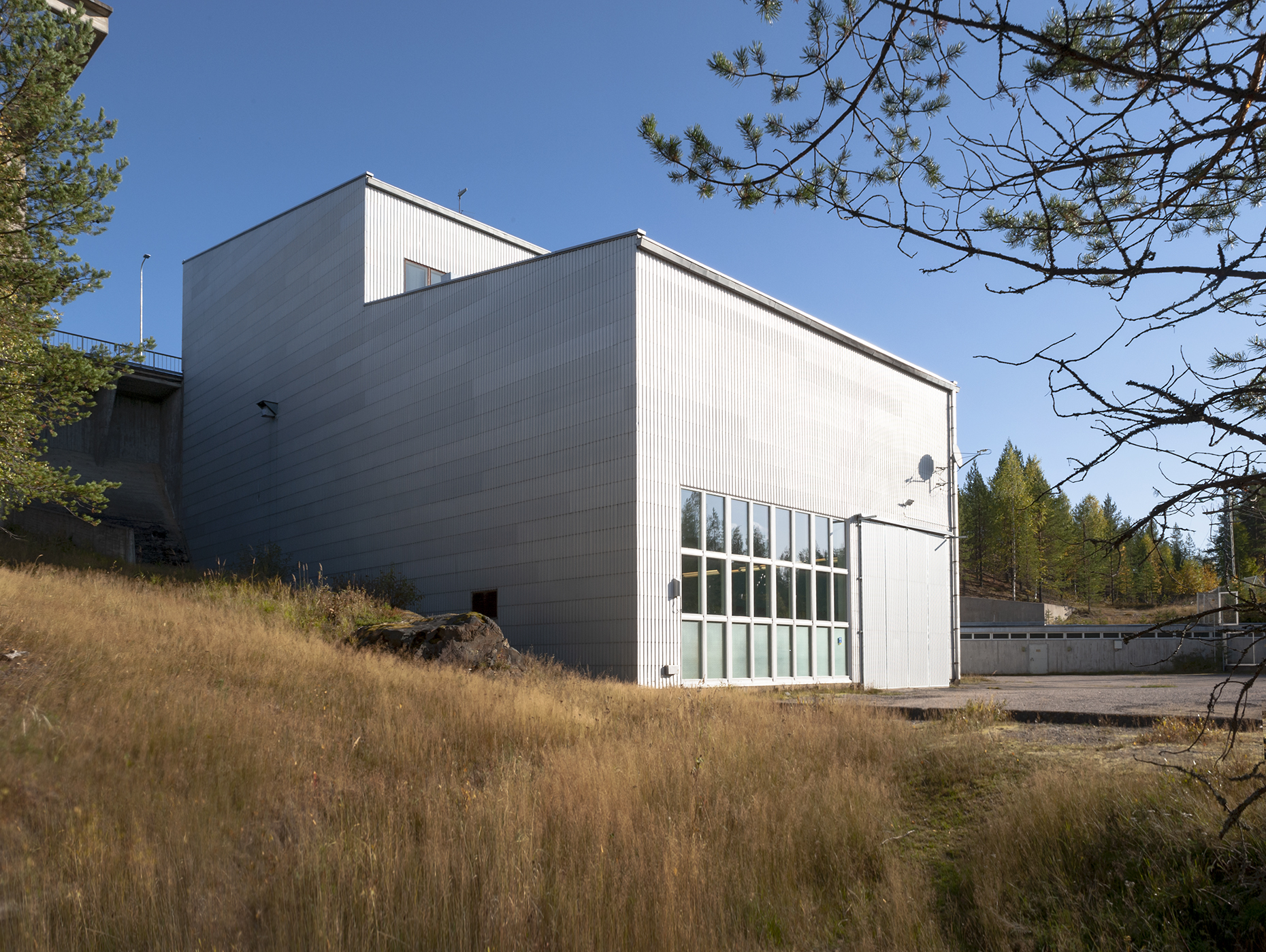 Aittokoski has only one set of machinery. The turbine was ordered from Tampella and the generator from Strömberg. The power house, designed by Aarne Ervi, was built with a concrete frame and was cladded with profiled aluminium sheeting. Trial run was performed without problems and Aittokoski was connected to the power grid on 16 June 1960. After the plant was completed, some landscaping work still needed to be done.[2]
