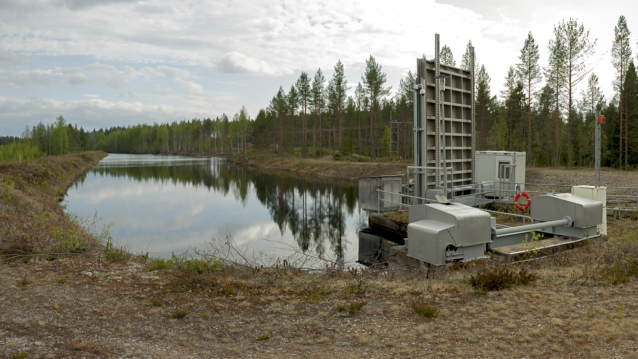Western branch of the channel has been dammed with a long embankment and functions now as a headrace for the plant. Headwater has two regulating dams equipped with flood gates. Small power house designed by Matti Kallio-Koski M. Sc. (Eng) was built out of brick and finished 1957. Pyhännänkoski is part of the series of hydropower plants in the waterways of Oulujoki.